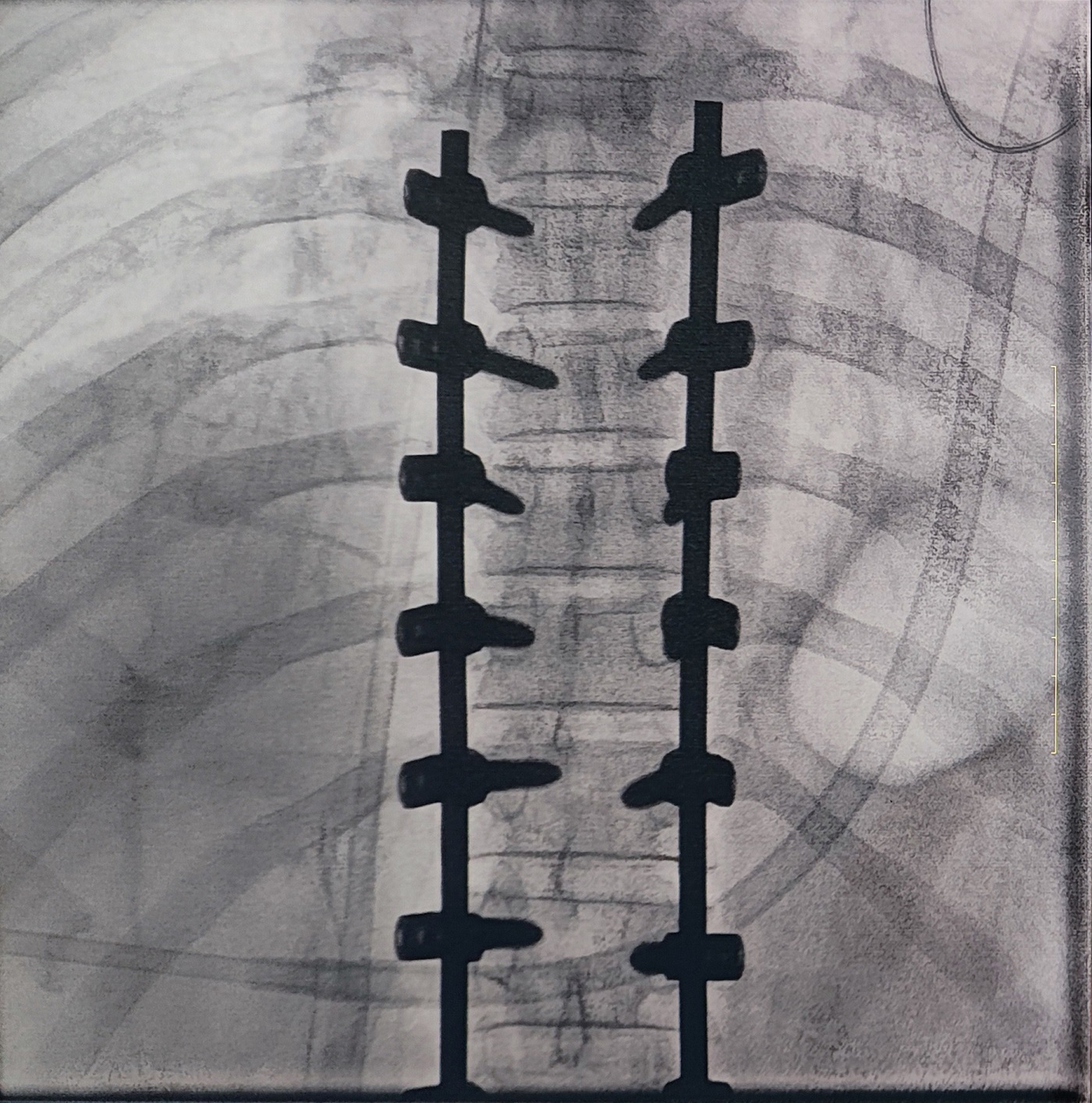 一場脊柱手術(shù)中,醫(yī)生需要拍攝跨越7個節(jié)段的脊柱影像,由于曝光的視野較大,常規(guī)視野的C形臂通常需要拍攝2-3次,普愛醫(yī)療大平板一體式C形臂30CM*30CM的“大視野”,輔助醫(yī)生一次性完成了7個節(jié)段的拍攝。最終,醫(yī)生在高清影像的輔助下完成了14枚螺釘?shù)木珳?zhǔn)定位、置入。