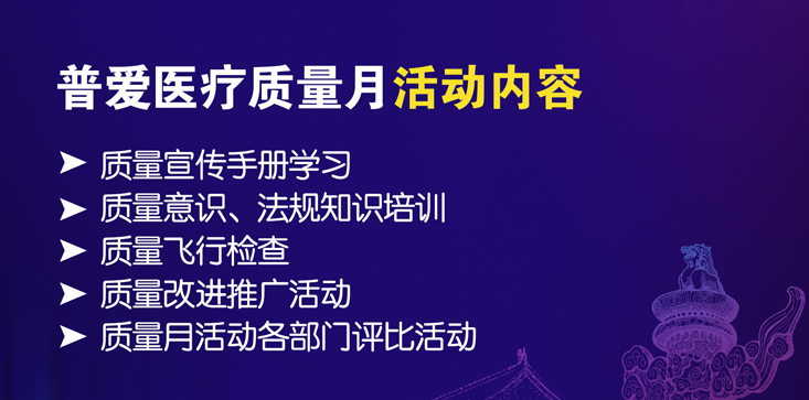 質(zhì)量是企業(yè)立足、發(fā)展的根本,是企業(yè)的生命,沒有質(zhì)量就沒有市場、更不會實現(xiàn)發(fā)展。9月以來,普愛醫(yī)療積極響應國家質(zhì)量月活動號召,組織開展了一場以“規(guī)范質(zhì)量管理,提升產(chǎn)品質(zhì)量”為主題的質(zhì)量月活動,在企業(yè)內(nèi)部大力營造“人人重視高質(zhì)量,人人創(chuàng)造高質(zhì)量,人人享受高質(zhì)量”的良好氛圍,深入推進全面質(zhì)量管理,積極引導全員、全過程、全方位質(zhì)量提升,以推動開創(chuàng)高質(zhì)量發(fā)展新局面。
