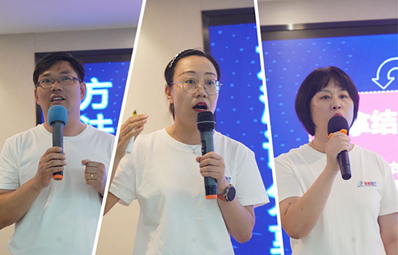 參會人員共分為八組,每組成員均來自普愛醫(yī)療的不同部門,會議緊緊圍繞“定目標、追過程、拿結(jié)果”展開,每組結(jié)合工作中的實際案例進行分享,共同探討管理技能提升?,F(xiàn)場互動提問環(huán)節(jié),緊張激烈,提出質(zhì)疑,給予建議,大家在準備和分享的過程中呈現(xiàn)了一場深度跨界融合的思想盛宴。