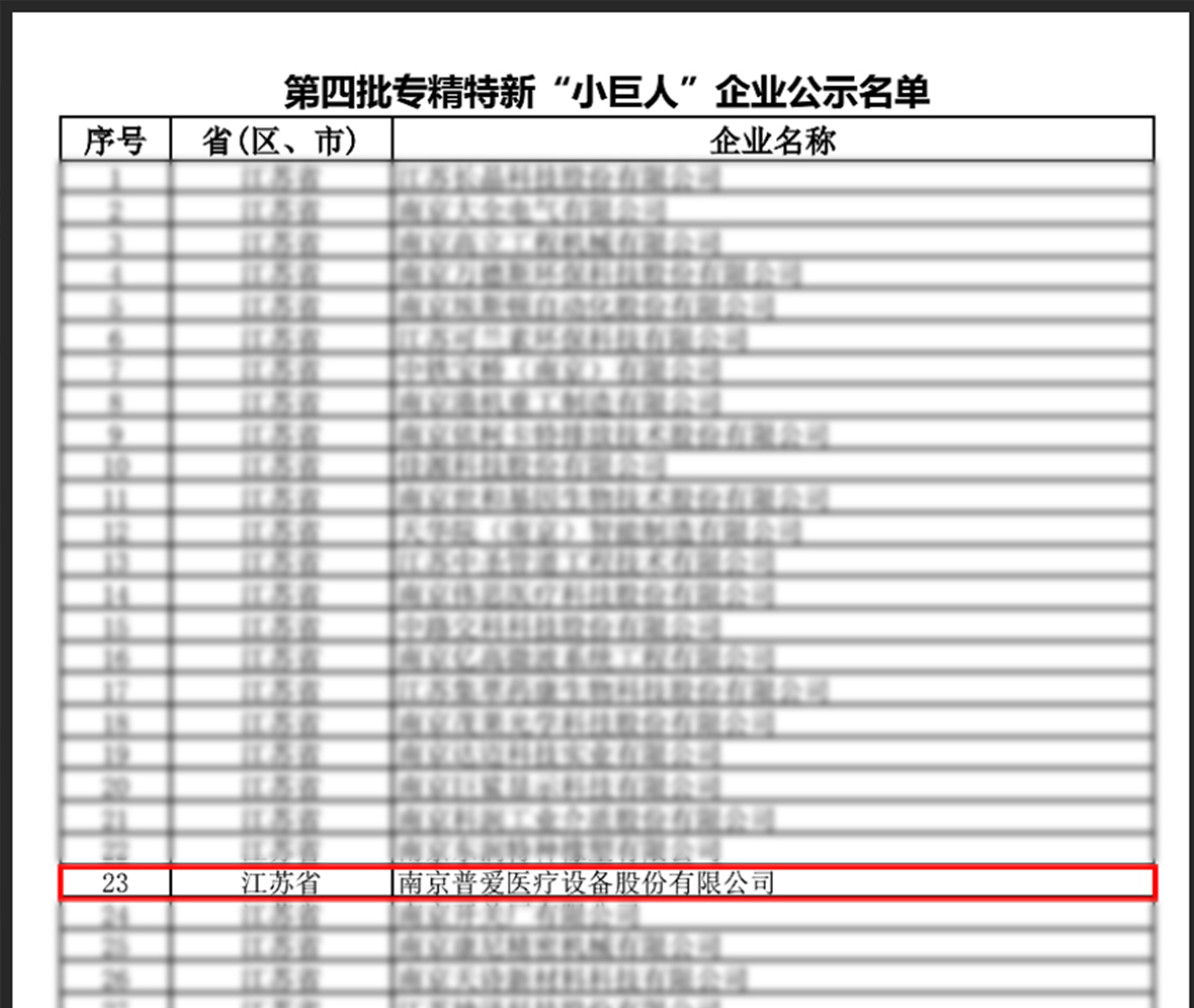 近日,國(guó)家工業(yè)和信息化部完成對(duì)第四批專精特新“小巨人”企業(yè)培育的審核與名單公示,南京普愛醫(yī)療設(shè)備股份有限公司成功入選。