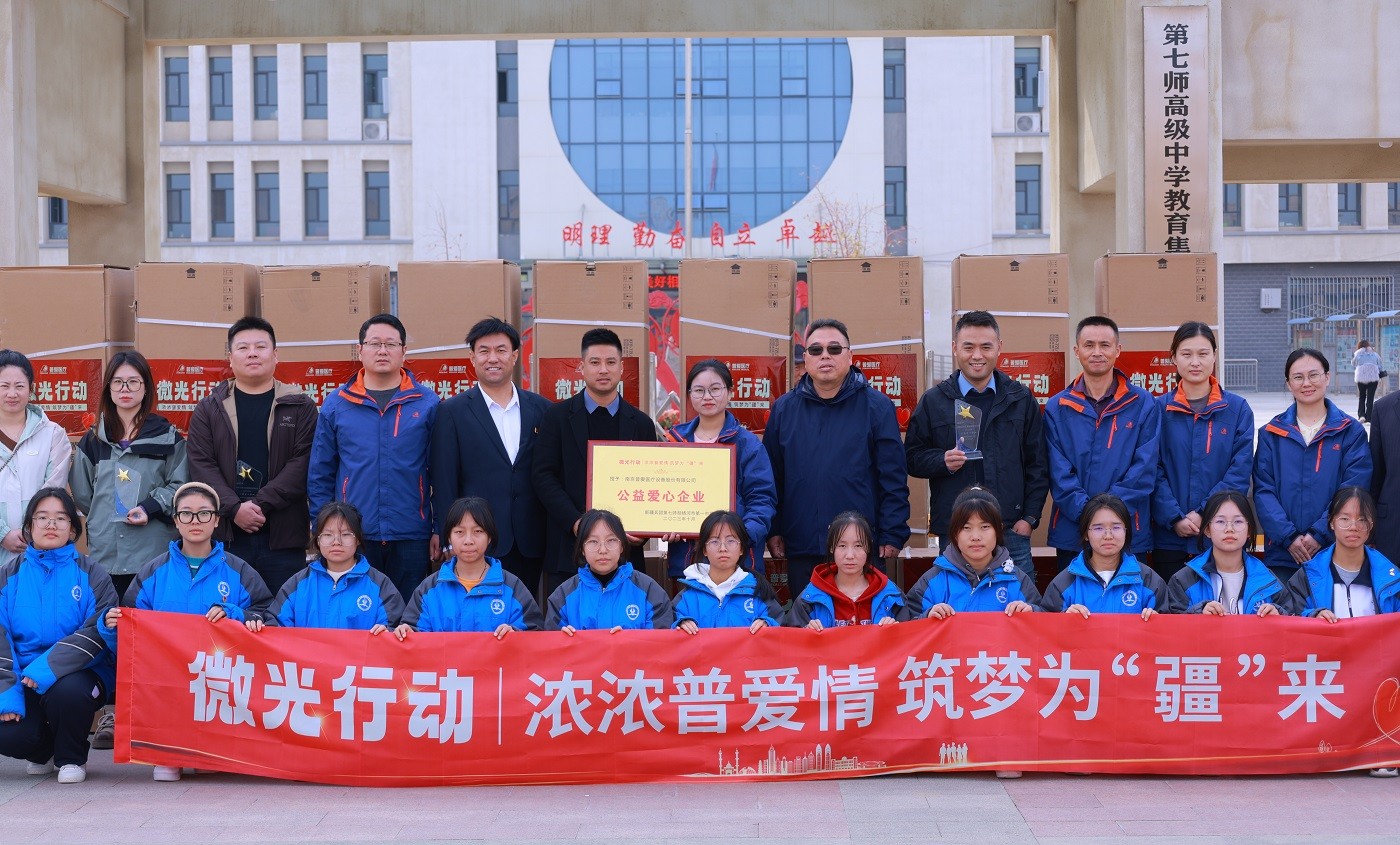 10月23日,由普愛(ài)醫(yī)療員工代表和會(huì)員俱樂(lè)部客戶代表組成的“微光行動(dòng)”公益小組來(lái)到新疆胡楊河市第一中學(xué)開(kāi)展助學(xué)捐贈(zèng)活動(dòng)。