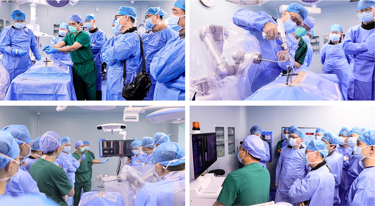 為了讓骨科手術機器人導航技術真正走進各級醫(yī)療機構,普愛醫(yī)療特聯(lián)合天津市津益醫(yī)院開設“骨科手術機器人臨床應用學習班”,構建起“科技助力+技能傳輸”的完整鏈路。學習班圍繞機器人實操,邀請江蘇省人民醫(yī)院骨科專家現(xiàn)場帶教,展示設備的全流程操作。來自全國各級醫(yī)療機構的百余名醫(yī)生參與了本次實操。