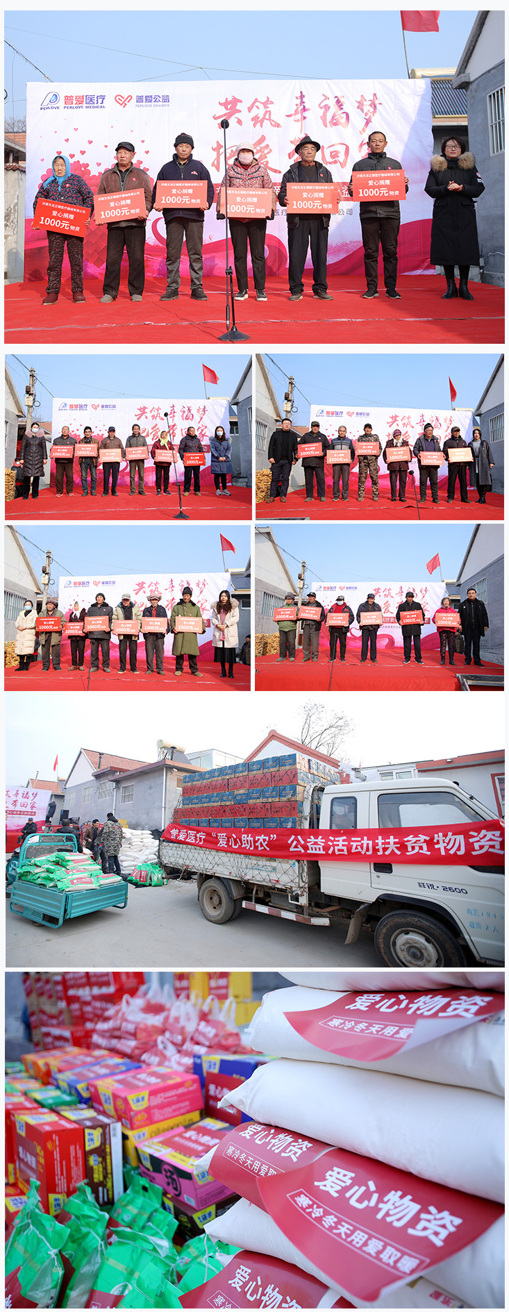 12月18日,普愛醫(yī)療攜手會員俱樂部成員在山東省萊州市柞村鎮(zhèn)大臺頭村舉辦“共筑幸福夢,把愛帶回家”社會公益助農(nóng)活動(dòng),為當(dāng)?shù)?0戶貧困家庭捐贈生活物資,用善舉傳遞愛心,讓溫暖在寒冬延續(xù)。普愛醫(yī)療副總經(jīng)理趙政文先生、會員俱樂部成員代表、柞村鎮(zhèn)大臺頭村村委書記王京成先生出席了本次活動(dòng)。萊州市電視臺及萊州日報(bào)等媒體對本次“愛心助農(nóng)”公益活動(dòng)進(jìn)行了現(xiàn)場采訪報(bào)道。