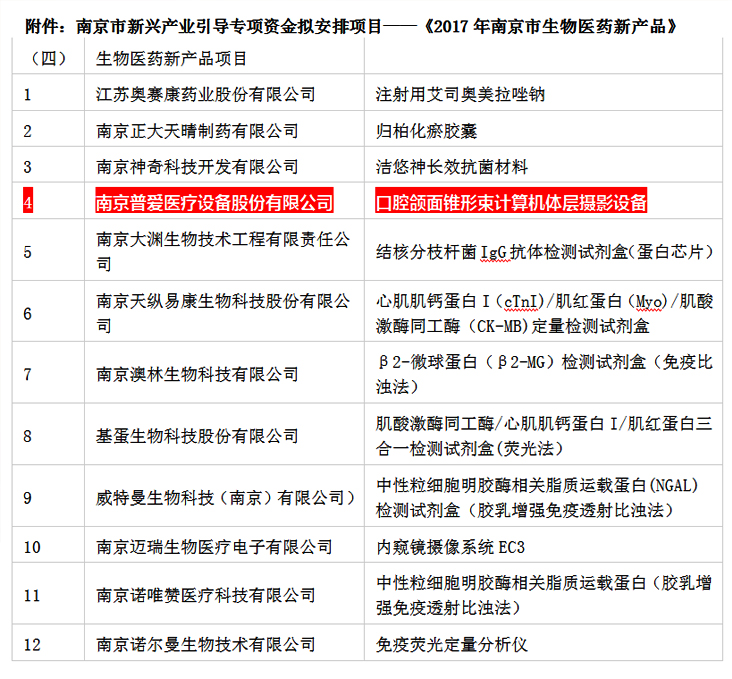 普愛醫(yī)療自主研發(fā)的重磅新品PLX3000A(口腔CBCT)成功入選《2017年南京市生物醫(yī)藥新產(chǎn)品項目》。這是普愛醫(yī)療繼2015年DR產(chǎn)品(PLX8500系列)、3D C形臂(PLX7200)、2016年動態(tài)平板C形臂(PLX7100 A),連續(xù)三年4個產(chǎn)品入選南京市生物醫(yī)藥新產(chǎn)品項目。