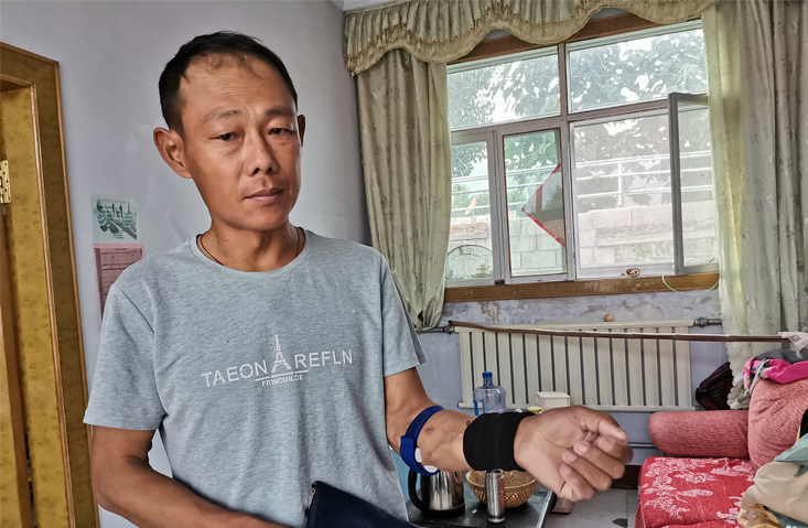 42歲的毛偉強(qiáng),是山東省萊州市祚村鎮(zhèn)·大臺(tái)頭村的一個(gè)果農(nóng),家里只有三口人。他是一個(gè)嚴(yán)重的尿毒癥患者,曾下過兩次病危通知,目前一個(gè)星期要去醫(yī)院透析3次,妻子的精神時(shí)而清醒時(shí)而糊涂,家里的重?fù)?dān)都?jí)涸谒粋€(gè)病人身上。更令他心痛的是他心愛的女兒,也是一個(gè)尿毒癥患者,今年才只有15歲,正在上初三,學(xué)習(xí)成績特別優(yōu)秀。他的母親也因尿毒癥剛?cè)ナ啦痪?,本該陽光幸福的家庭,卻被命運(yùn)捉弄著。他透析的膀臂,常年纏著繃帶,沒有辦法,他必須帶著傷口去干活,去掙錢,為他的家人撐起一片天。